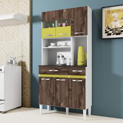 Armario De Cozinha 6 Portas 2 Gavetas Onix Chf Chocolate Amarelo