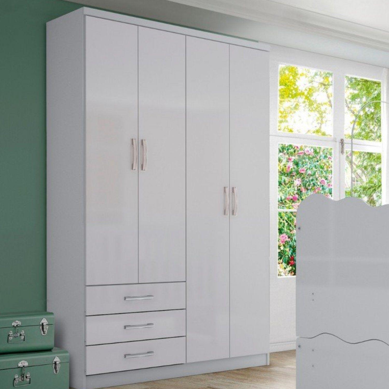 Guarda Roupa Solteiro 4 Portas 3 Gavetas Caju Henn Branco Guarda