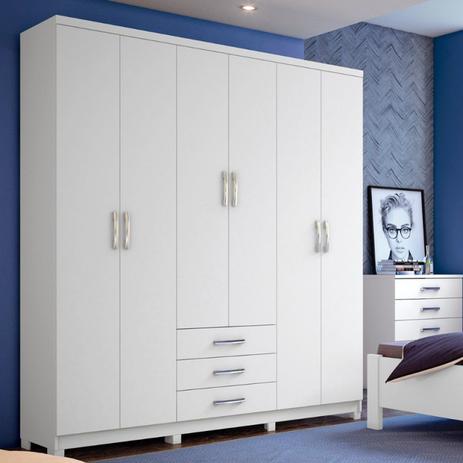 Guarda Roupa Casal Caju 6 Portas 3 Gavetas Branco Henn