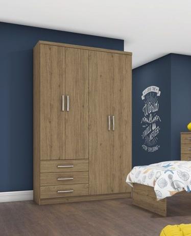 Guarda Roupa Solteiro 4 Portas 3 Gavetas Caju Henn Rustico