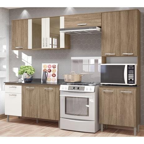 Cozinha Compacta Fit Com Balcao Carvalho Rustico Off White Nicioli