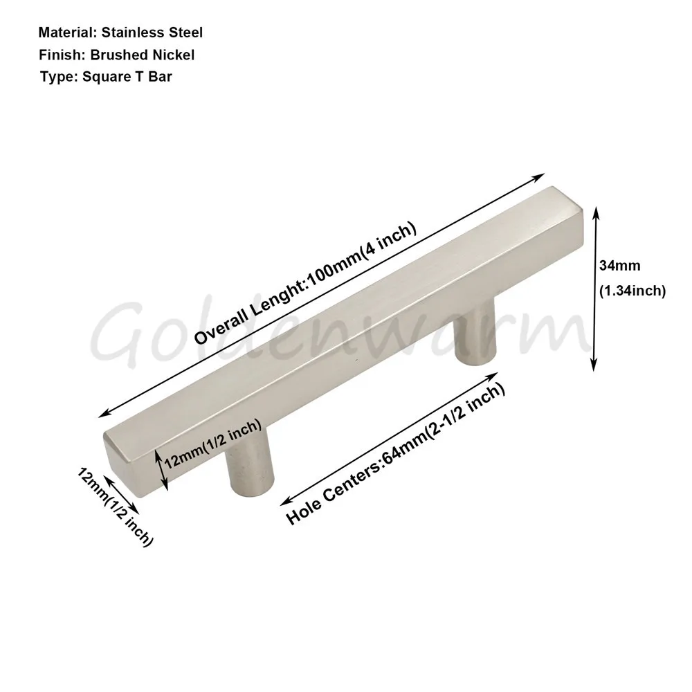 Niquel Escovado Escovado Gabinete Puxa Gaveta Puxa Bar Quadrado