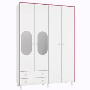Guarda Roupa Hortela 4 Portas Com Espelho Branco Rosa Flex