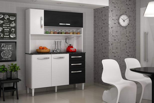 Armario Para Cozinha Lotus Branco Preto Chf Moveis Branco Preto