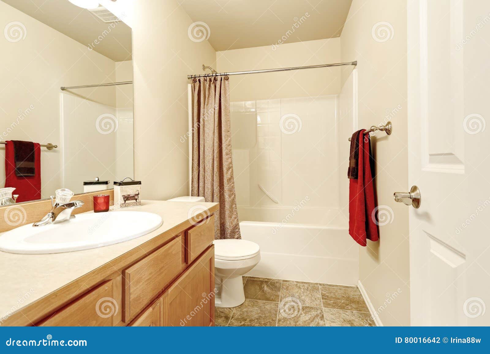 Interior Simples Do Banheiro Na Cor Bege Imagem De Stock Imagem