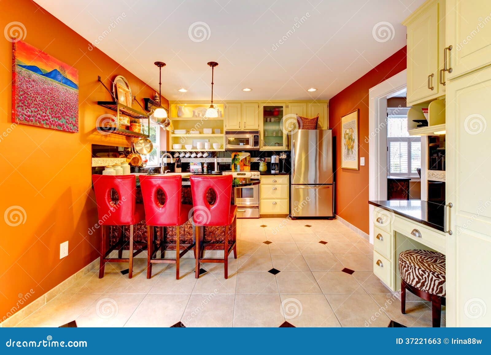 Sala Acolhedor Da Cozinha Das Cores Mornas Imagem De Stock