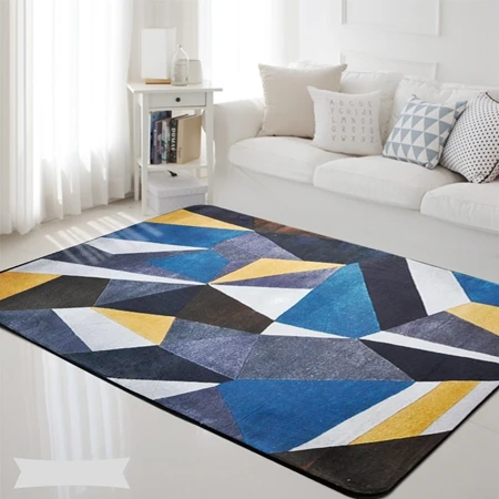 Tapete Retangulo Geometrico Preto Azul Cinza Preto Nordico