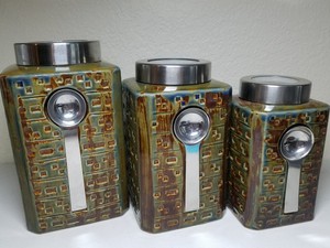 Lindo Pier One Stoneware Cozinha Cilindro Conjunto De 3 Pecas Azul
