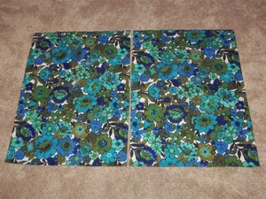 Vintage Mcm Azul Verde Flower Power Cortinas Par Cozinha Rod 37 L