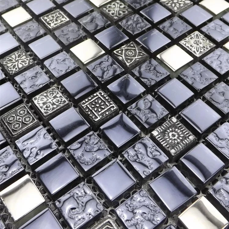 Profunda Cor Cinza Esculpida Lareira De Telhas De Mosaico De Vidro