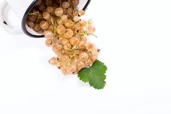 A Groselha Cor De Rosa Madura Derramada Fora De Uma Cesta De Vime