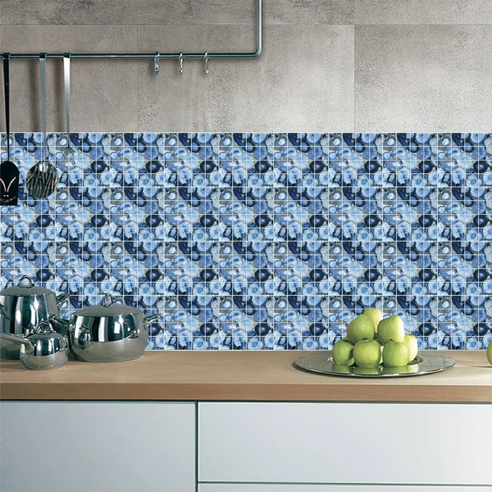 Azul Brilhante Mosaico De Marmore Engrossar Telha Etiqueta Do Banheiro Cozinha Decore Diy Auto Aderente Linha Da Cintura Pvc Resistente Ao Desgaste Papel De Parede Aliexpress