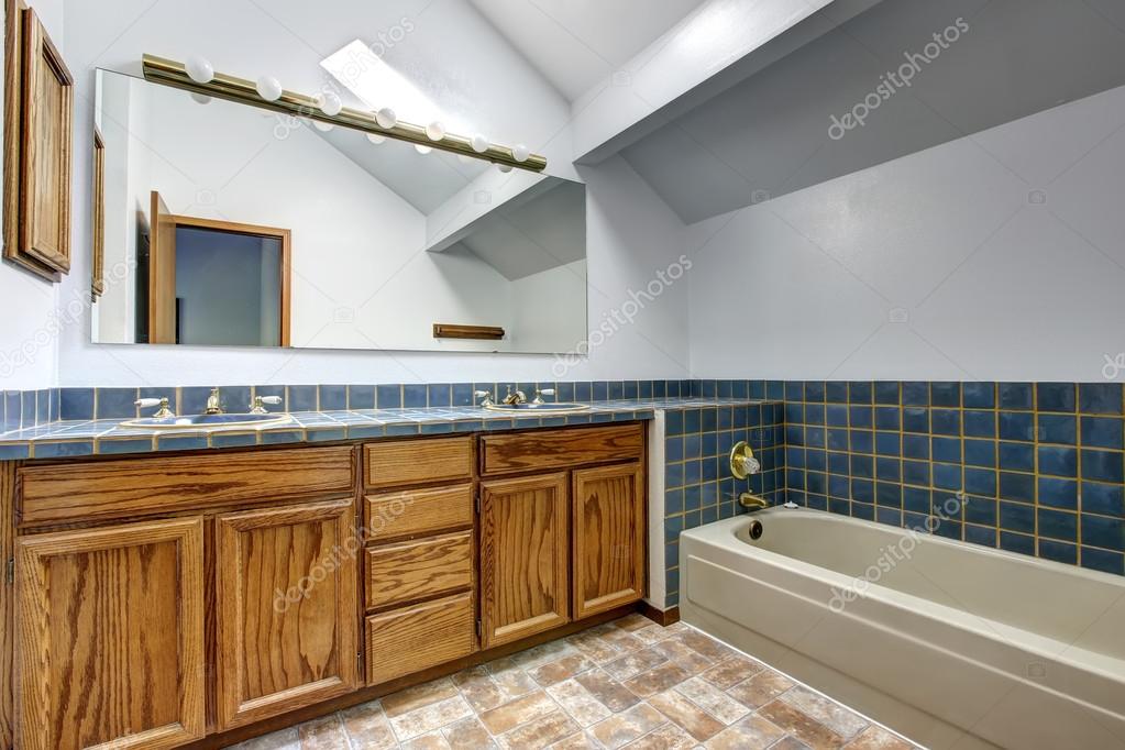 Foto De Banheiro Brilhante Com Azul Do Armario E Mais Fotos De Stock De Aberto Istock