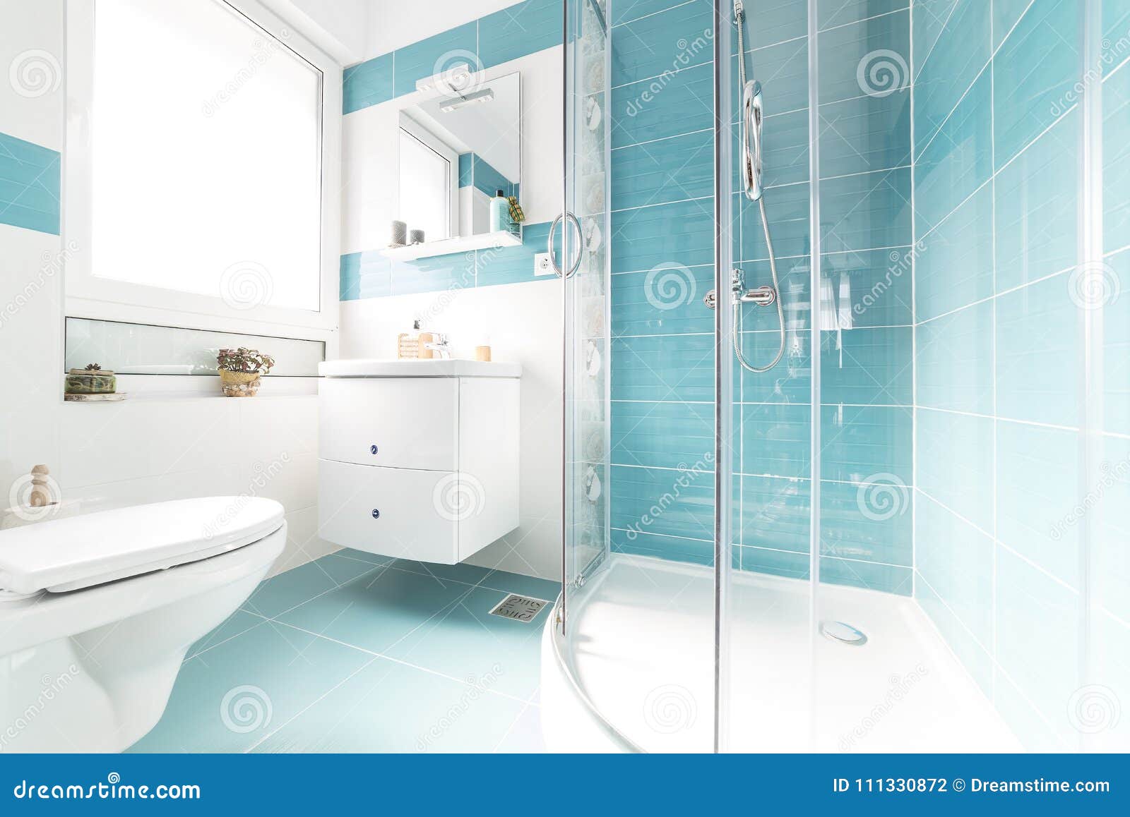 Azul E Completo Do Banheiro Claro Foto De Stock Imagem De