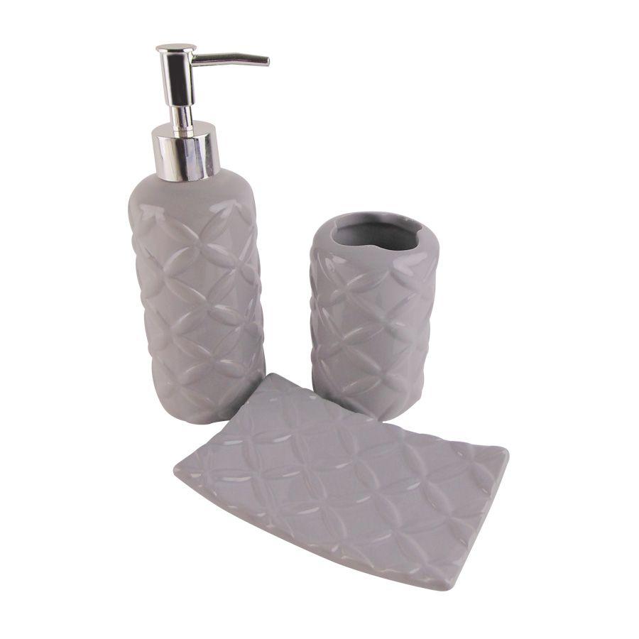 Kit Para Banheiro Cor Cinza 3 Pecas Em Ceramica 09065 Mart
