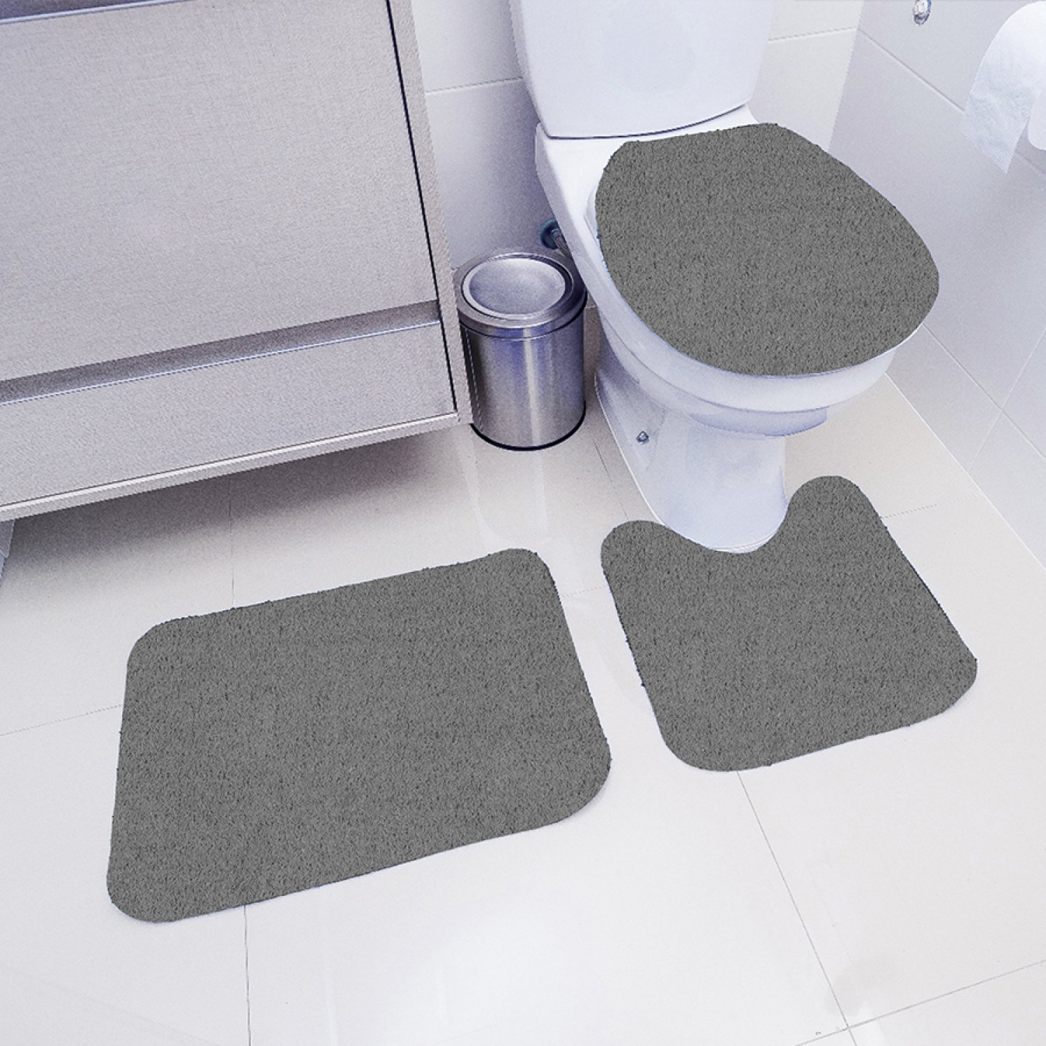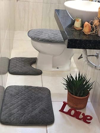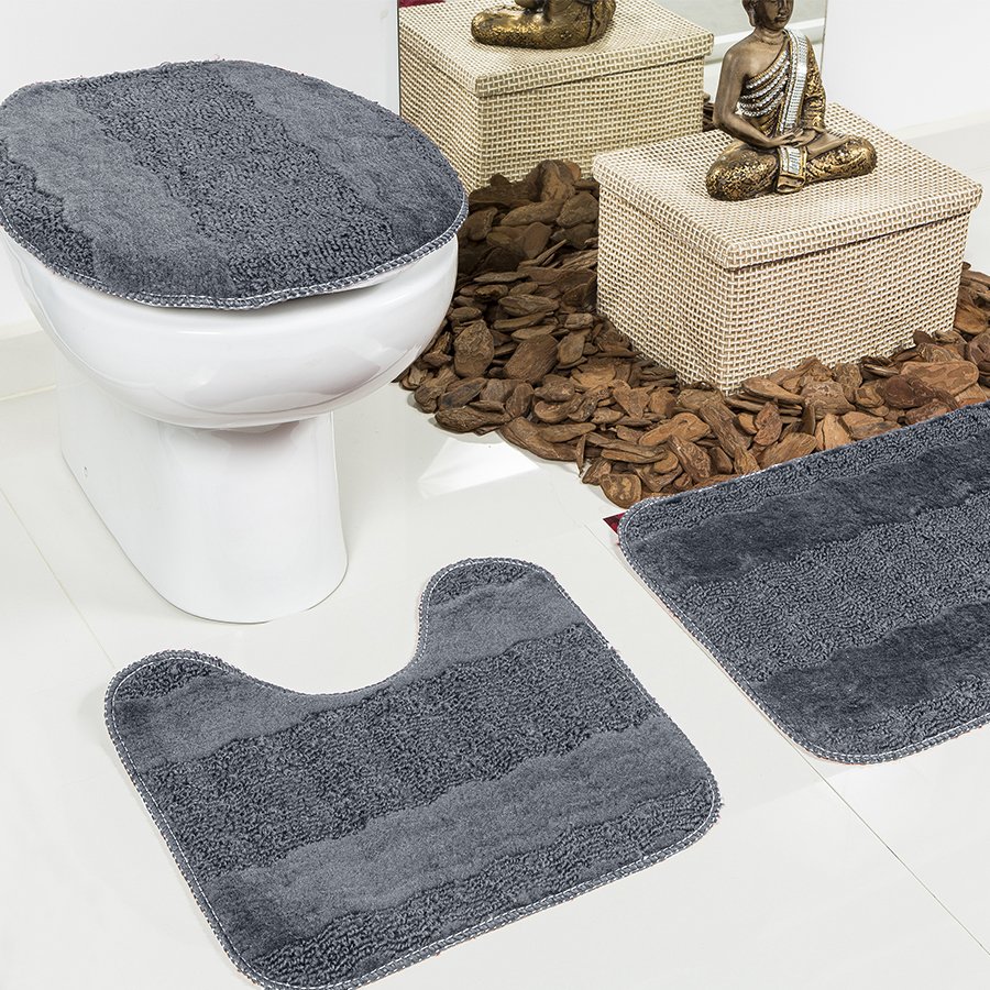 Jogo De Tapete De Banheiro 3 Pecas Cor Cinza Chumbo Amazon Com Br