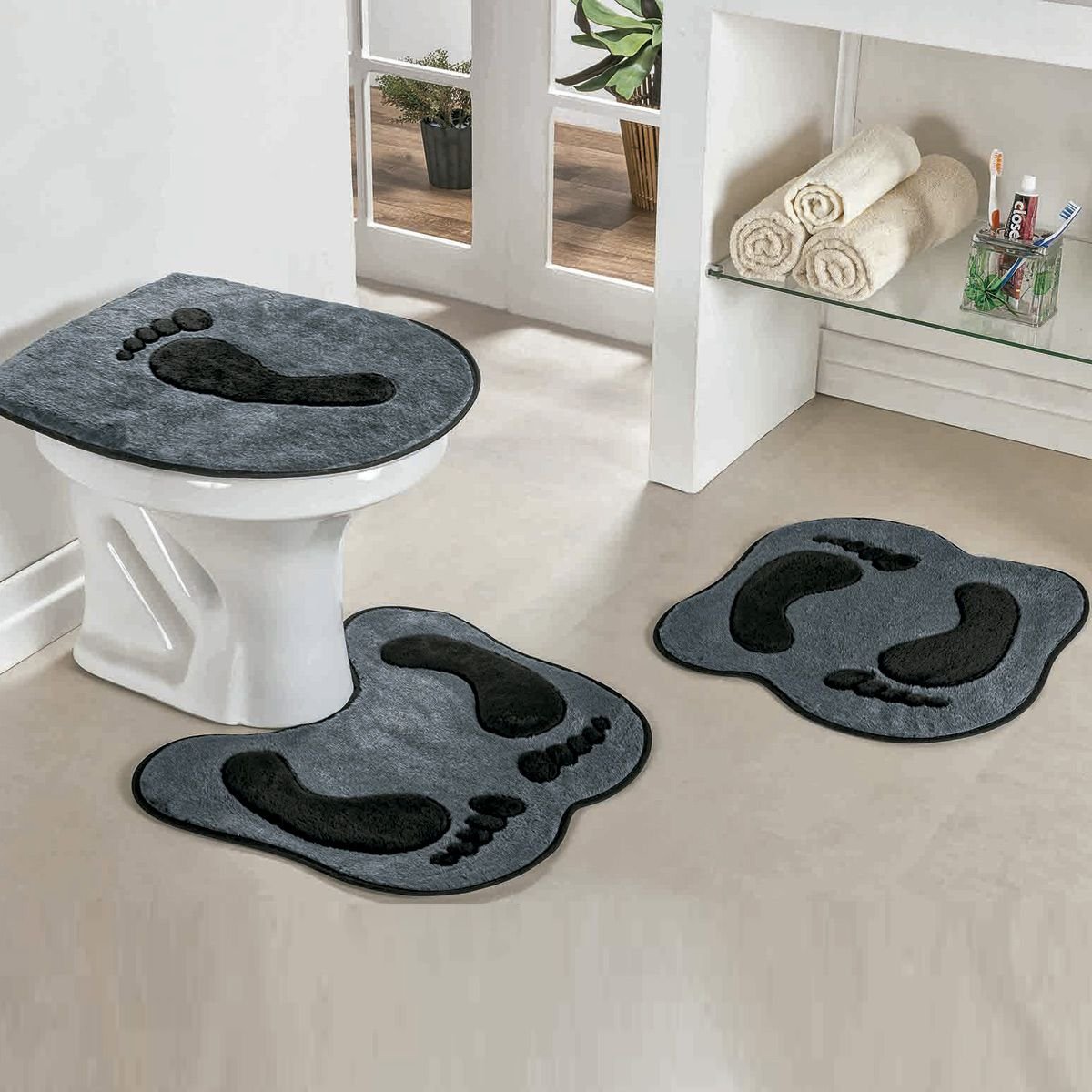 Jogo De Banheiro Premium Formato Pegada Cinza 03 Pecas Colombo