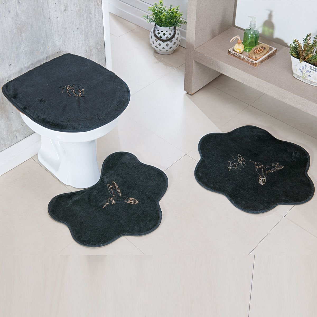 Jogo De Banheiro Premium Formato Beija Flor Cinza 03 Pecas Colombo