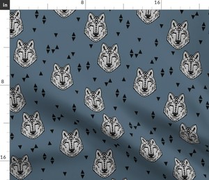 Wolf Lobos Animal Azul Bebe Menino Bercario Cabeca Tecido Impresso