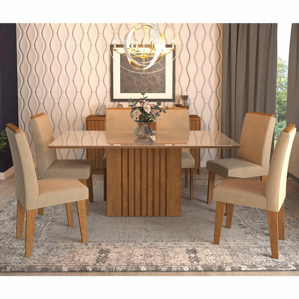 Sala Jantar Ana 180 Cm X 90 Cm Com 6 Cadeiras Tais C Moldura