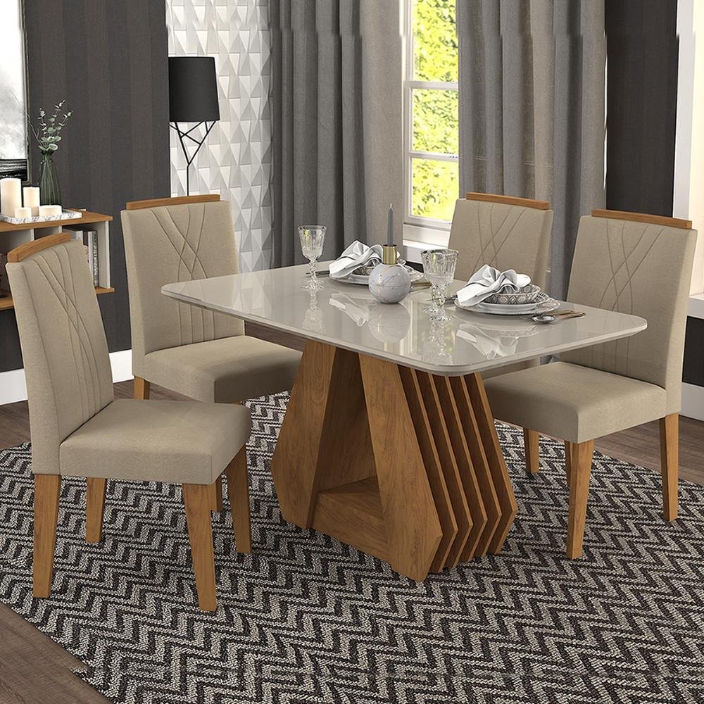 Sala Jantar Gaia 4 Cadeiras Mesa Tampo Vidro Branco Madesa Nas