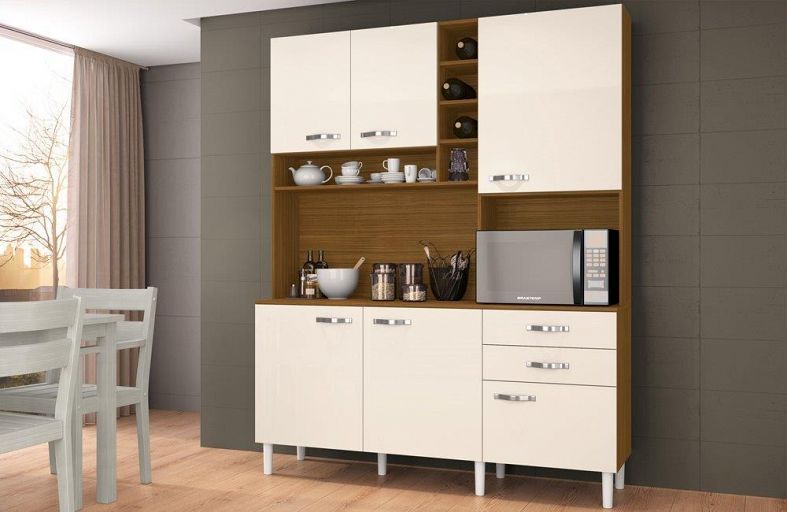 Cozinha Compacta Gaviao 5 Portas 3 Gavetas Cor Branco Canela