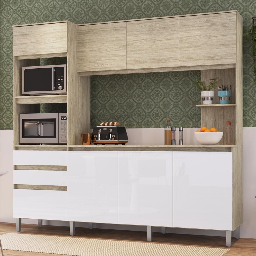 Cozinha Aurora 2 10 Portas 3 Gavetas Cor Branco Canela Jcm