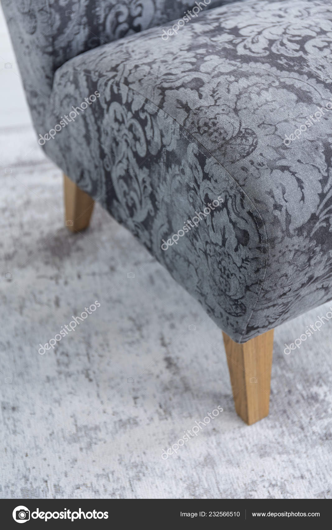 Close Cadeira Estampada Carpete Cinza Interior Quarto Elegante