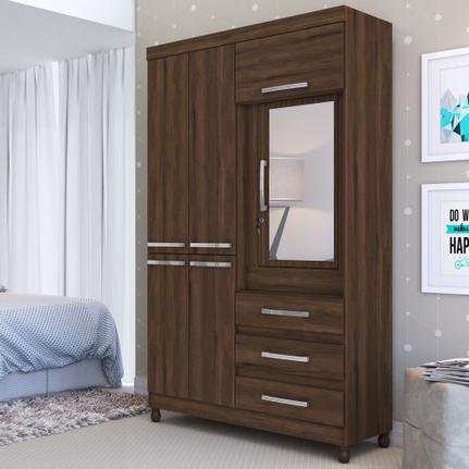 Guarda Roupa Albatroz Duster Com Espelho 4 Portas 3 Gavetas Cedro