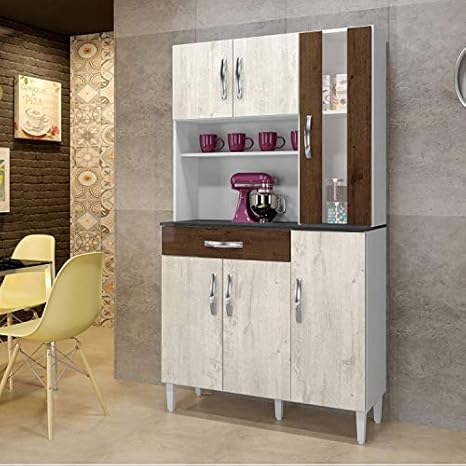 Armario De Cozinha Carol 6 Portas Branco Cinza E Preto Poliman
