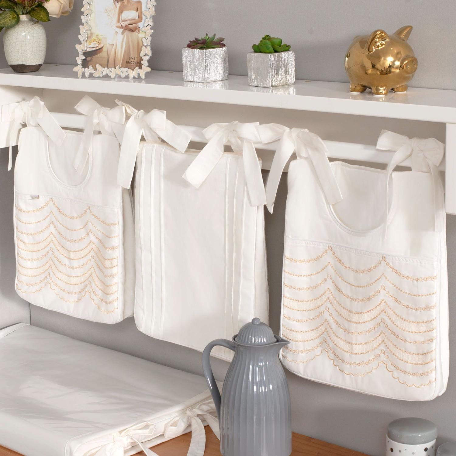 Porta Treco E Fraldas 3 Pecas Percal 300 Fios Bordado Marfim