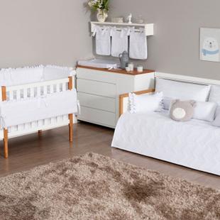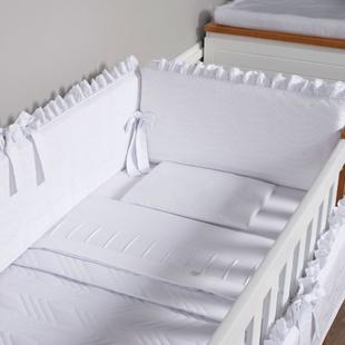 Kit Cama Baba Auxiliar 7 Pecas Percal 300 Fios Bordado Com Babados