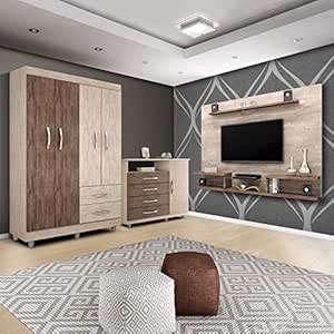 Quarto De Solteiro Com Painel Comoda E Guarda Roupa 4 Portas