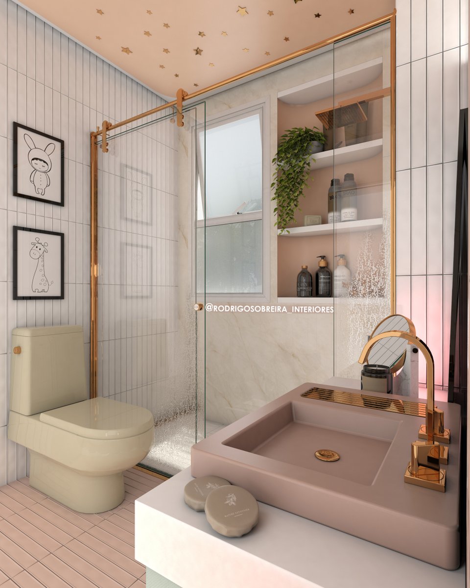 Banheiro Classico Rosa Verde E Dourado Com Azulejo Escama De