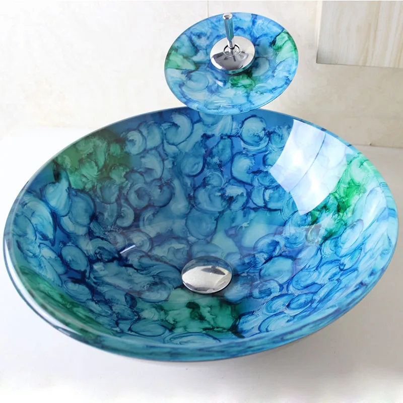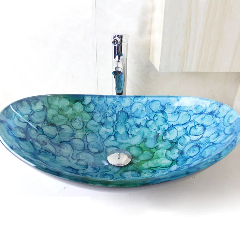Moderno Oval De Vidro Temperado Sink Cachoeira Conjunto Torneira Da Bacia Torneira Pia Do Banheiro Cor Azul Glass Sink Bathroom Sink Setfaucet Bathroom Sink Aliexpress