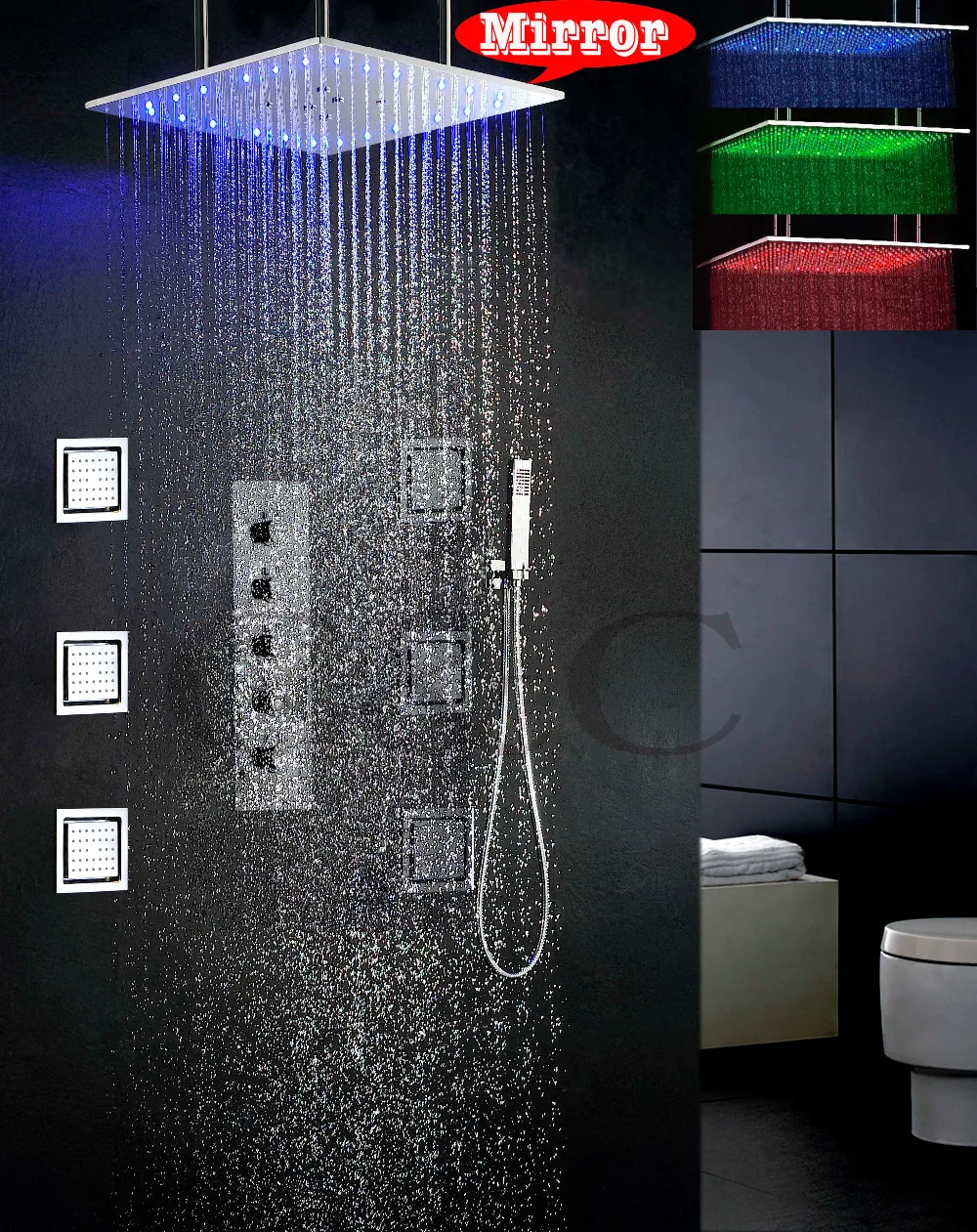 Compre Fulgor De Agua Poder Led 3 Mudanca De Cor De Acordo Com A Temperatura Da Agua Do Banheiro 24x31 Quadrado Torneira Do Chuveiro Conjunto De Teto Esconder Teto Montado De Holtek