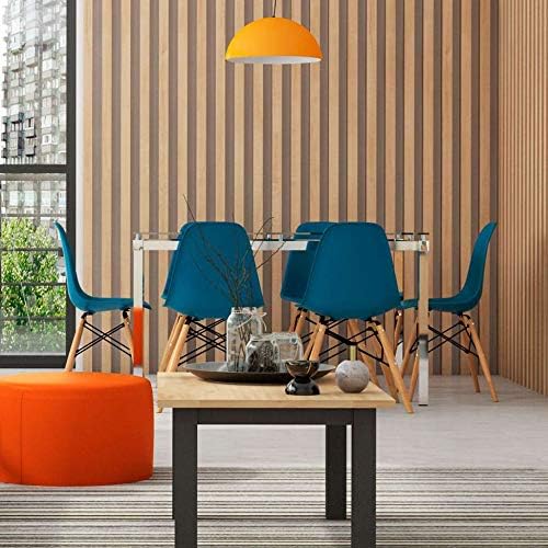 Conjunto Com 4 Cadeiras Eames Premium Azul Petroleo Base Madeira