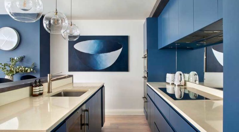 Cozinha Feita Nas Cores Azul Petroleo E Lina Com Detalhe Da Porta
