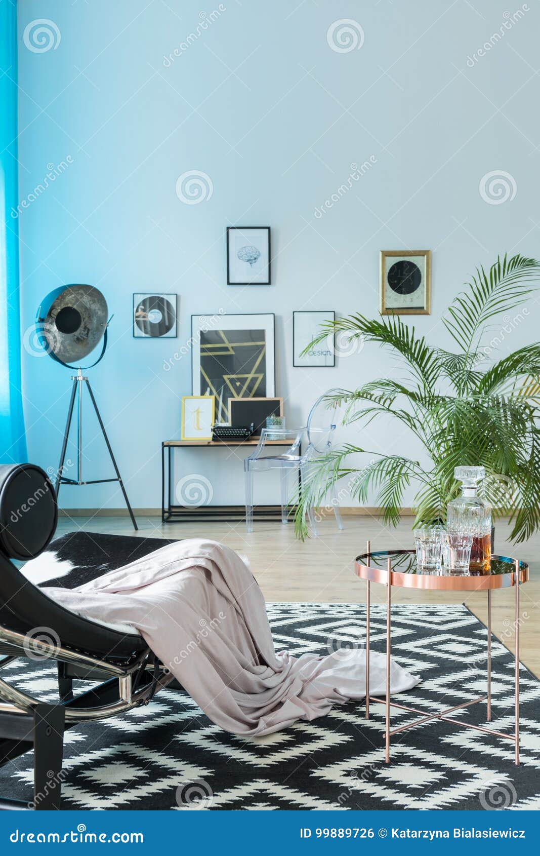Cozy Sala De Estar Com Contraste Cor Paredes Banco De Imagem