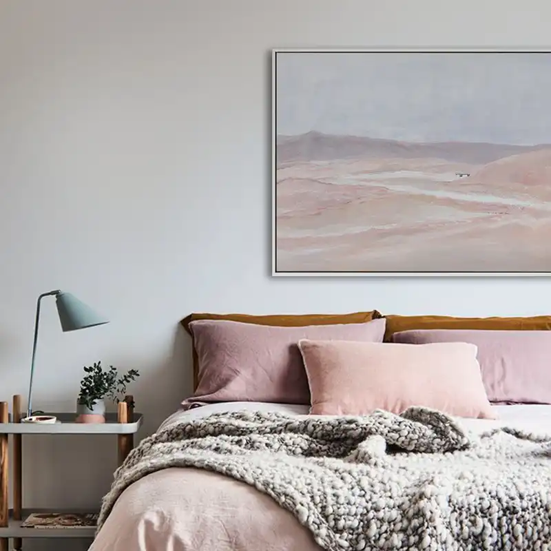 Pintura Cinzenta Acima Da Cama Imagem De Stock Imagem De Furniture Pastel 104301907