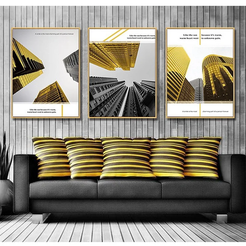 Luz Dourada Atmosferica Edificio De Luxo Sala De Estar Pintura Decorativa Versao Vertical Entrada Sofa Fundo Da Parede Mural Pintura E Caligrafia Aliexpress