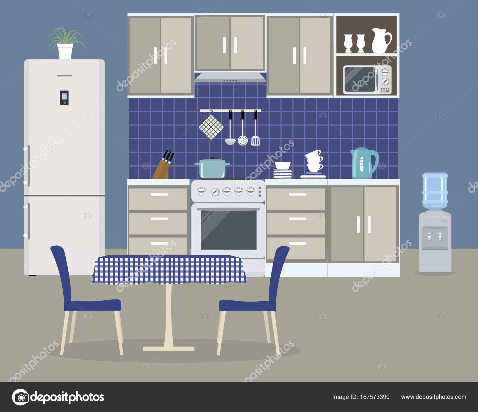 Cozinha Em Uma Cor Azul Vetor De Stock C Irynaalex 167573390
