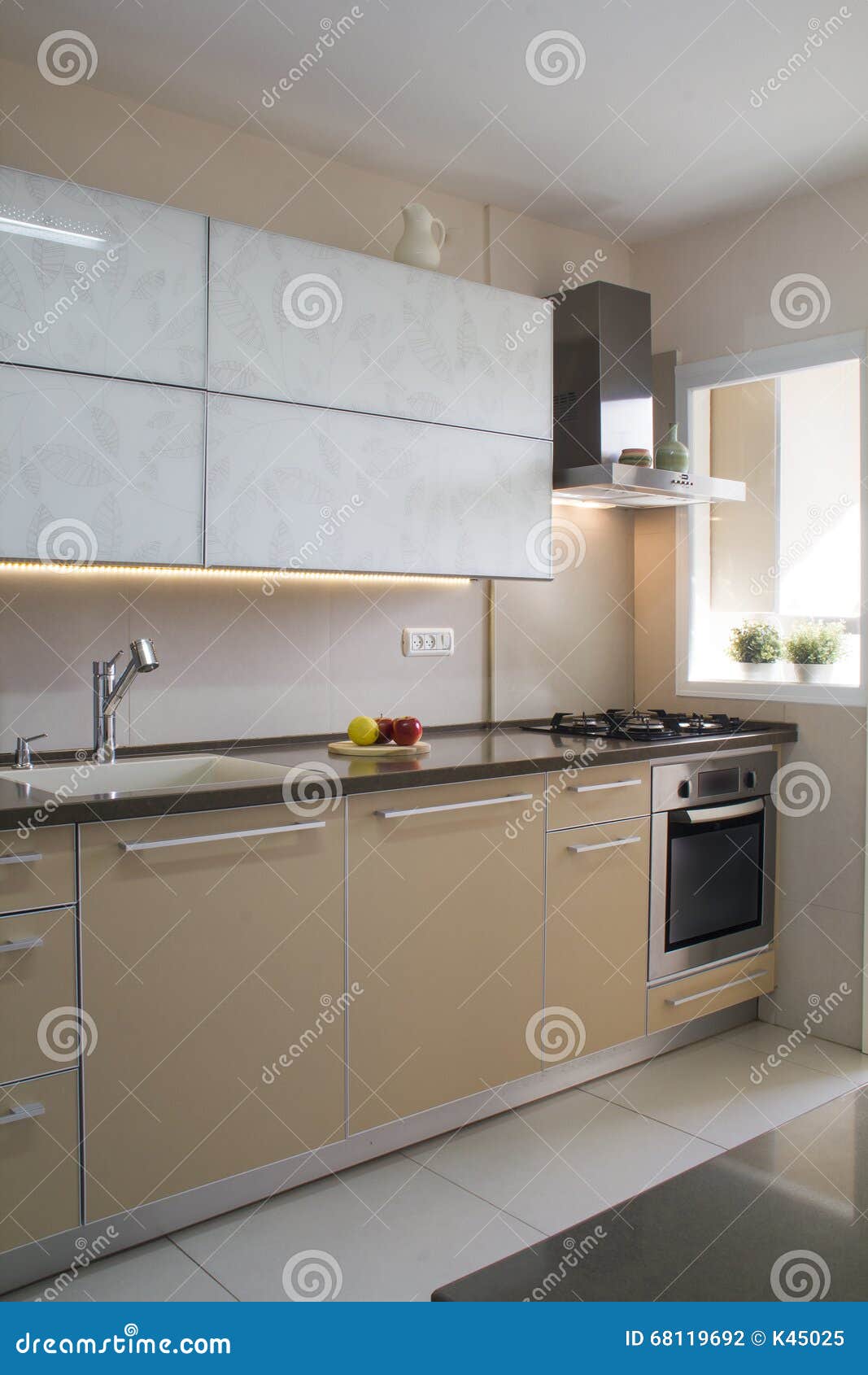 Cozinha Moderna Em Cores Do Bege E Do Creme Foto De Stock Imagem
