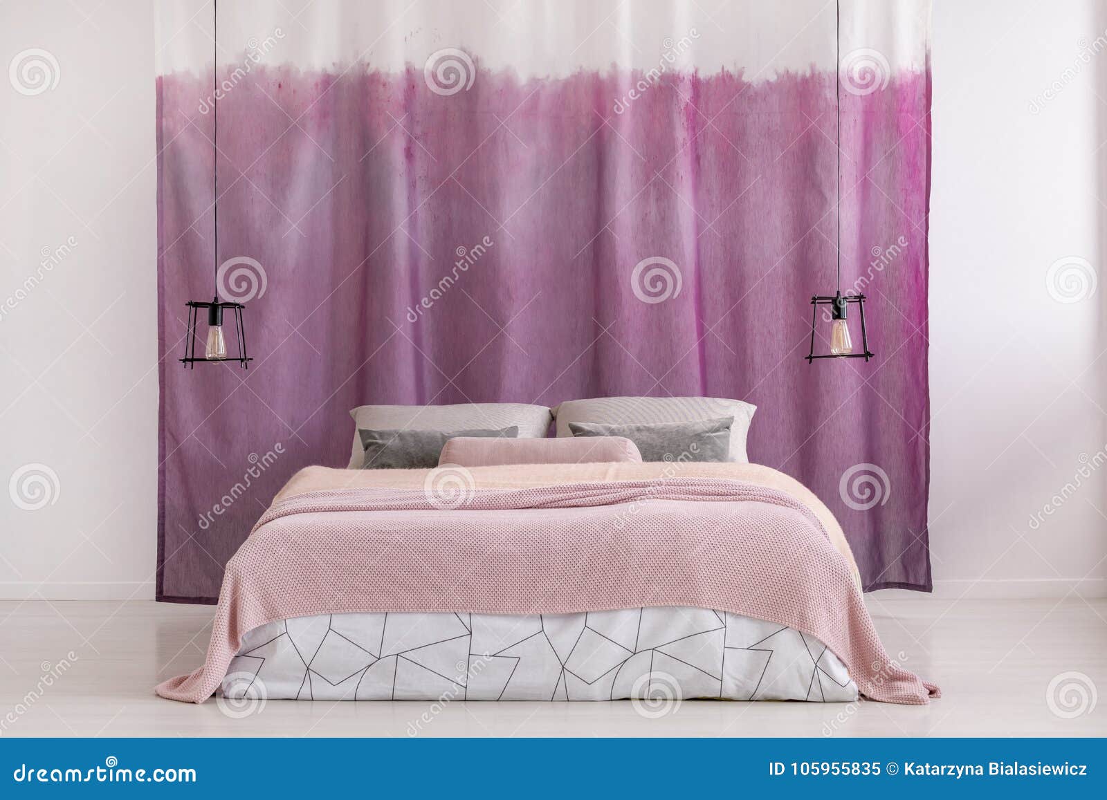Cobertura Cor De Rosa Na Cama Com A Cabeceira Preta No Quarto