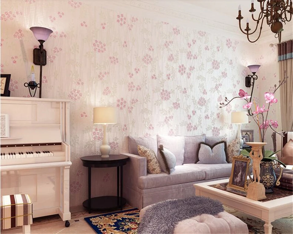 Beibehang Romantico Rosa Pastoral Bronzeamento Flor Papel De
