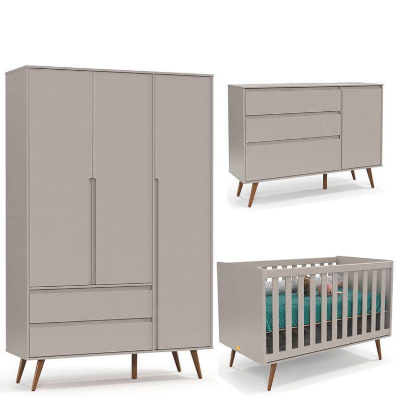 Quarto De Bebe Retro Clean 3 Portas Matic Cor Cinza Eco Wood