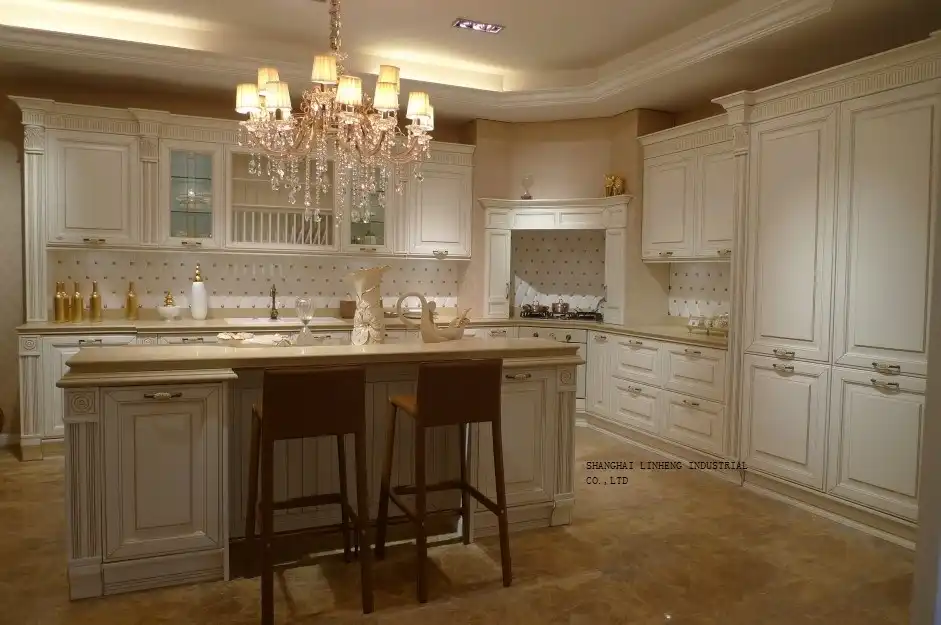 Creme De Laca Armario De Cozinha Com Bancada De Madeira Buy