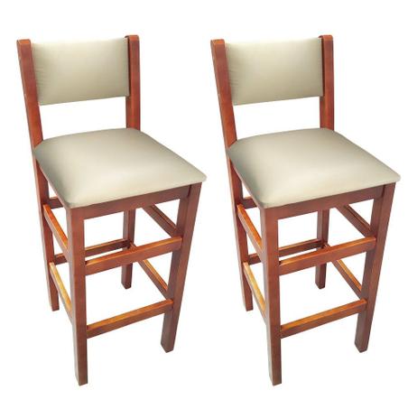 Kit 2 Banquetas Bistro Roma De Madeira Com Assento Encosto