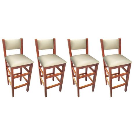 Kit 4 Banquetas Bistro Roma De Madeira Cor Mel Com Assento Encosto