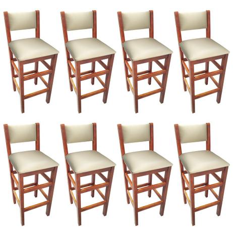 Kit 8 Banquetas Bistro Roma De Madeira Cor Mel Com Assento Encosto